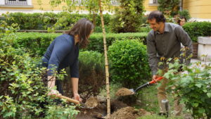 Посланикът на Финландия в България Н. Пр. Кирсти Похянкука и директорът на Геологическия институт засадиха по повод Деня на Земята финландска бреза във вътрешния двор на БАН.