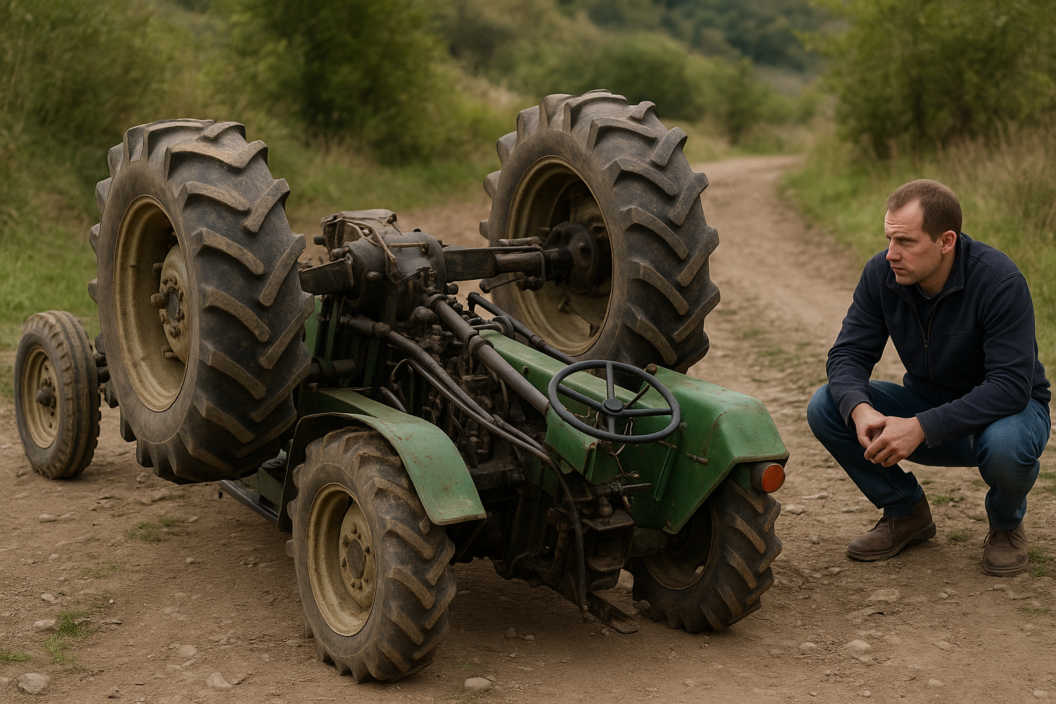При теглене на ремарке с оборска тор трактор се е преобърнал по стръмен наклон.