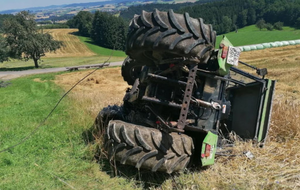 При огледа на местопроизшествието е установено, че при теглене на ремарке с оборска тор трактор се е преобърнал по стръмен наклон.